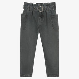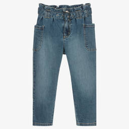 Lovely slouchy-fit jeans for girls, by Mayoral, in a gorgeous neutral beige shade. Made in soft sustainable cotton denim, these cute jeans have a stylish belt, side pockets, and a paper-bag adjustable waist to alter as your child grows.