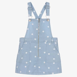 Charming beige pinafore dress for girls by Mayoral, made in mid-weight denim with light stretch for added comfort. This funky dress fastens with an exposed zip on the front and has adjustable shoulder straps for a better fit. A delicate white flower print with glitter centres gives a pretty finish.