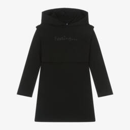 Black dress and jumper set for girls by Mayoral. The sleeveless dress has a soft cotton jersey bodice and a gathered tulle skirt in white and black, with glitter sparkle and patterned stripes. The viscose blend jumper has a softly knitted rib pattern and comes with a detachable white ruffled collar insert.