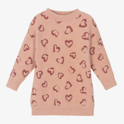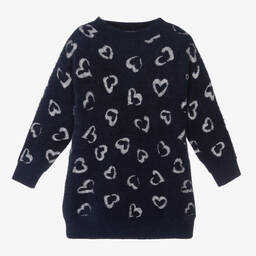 Casual knitted dress for girls by Mayoral, in a gorgeous navy blue. Soft, fluffy and warm, it has a jacquard hearts design in contrasting white, and ribbed trims for extra cosiness.