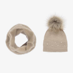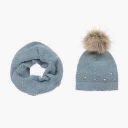 This delightful dusky pink pearl hat and snood set is by Mayoral, crafted from a soft, fluffy knit for ultimate warmth and style. The snood features ribbed detailing, great for keeping snug during chilly weather. The coordinating hat features a faux fur pom-pom and decorative faux pearls, adding a charming touch. Limited quantities available, so don't miss the chance to add this cosy set to your collection.