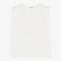 Girls green T-shirt from Mayoral, with a silver stud pattern. Made in soft and comfortable cotton jersey, this sleeveless style has padded shoulders.