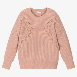 Grey marl knitted sweater for girls by Mayoral. knitted sweater for girls by Mayoral. Trimmed with stylish tassels, it is super soft and warm, with ribbed trims for extra cosiness. The sweater contains recycled fibres.