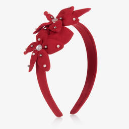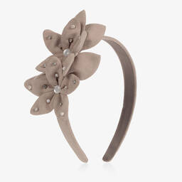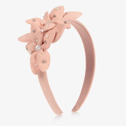 Navy blue hairband for girls by Mayoral. The flexible faux suede covered band had pretty flower appliqué details, with diamanté and pearl effect beads to add sparkle.