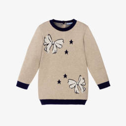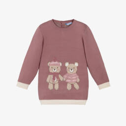 Girls pink bear sweater dress by Mayoral features an adorable bear motif on the front, adding a playful touch to this cosy outfit. Crafted from soft, high-quality knit, it ensures warmth and comfort during the chilly autumn and winter months. Easy button fastenings at the back make dressing effortless, while ribbed cuffs and hem add a stylish finish. Perfect for casual outings or family gatherings, this dress is available in limited quantities, so secure yours before it's gone.