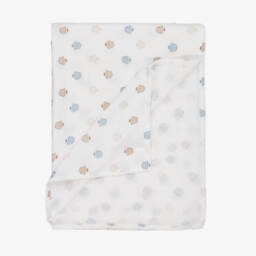 An ivory floral wrap for girls by Mayoral showcases a delightful blend of viscose and cotton, offering a soft and lightweight feel. The gentle pink, yellow, and green floral pattern adds a charming touch, making it perfect for sleep time comfort, or as a versatile burping cloth or nursing cover. Limited quantities available, ensuring your purchase is a unique addition to any nursery.