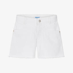 Girls pink cotton shorts by Mayoral feature a charming frayed hem and a subtle embroidered pattern. Perfect for spring and summer outings, these shorts ensure comfort with their adjustable waistband, allowing for a customised fit. Designed with practicality in mind, they include belt loops and secure fastening, making them easy to wear. Last chance to buy these stylish shorts, ideal for adding a touch of playfulness to any outfit.