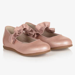 Slip-on navy blue pump shoes for little girls from Mayoral. The uppers are shimmering faux leather with an elasticated tonal ruffle strap across the foot for a secure fit. Lightly padded for added comfort the inner sole is durable leather and they are lined with cotton. The outer soles are non-slip rubber and textured to improve grip on slippery surfaces. These shoes are lined with 29% recycled cotton.