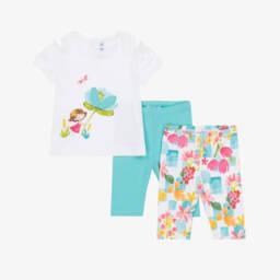 Girls yellow floral outfit set by Mayoral brings a touch of sunshine to any wardrobe. Featuring a soft cotton top with playful fruit prints and two pairs of comfortable leggings, one in solid yellow and the other with a colourful stripe pattern. Ideal for spring and summer outings, this set is perfect for mixing and matching, offering both style and comfort. Limited quantities available, so seize the opportunity to add this charming ensemble to your collection.