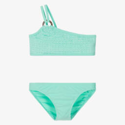 The orange ruffle bikini for girls by Mayoral is stylish, soft, and silky, making it perfect for the beach or pool. It features textured, mesh-style tiers on the top with a chic double strap on one side, looped through a brown ring. Designed with comfort and flair in mind, this swimwear is crafted from a knitted fabric blend, ensuring an elegant fit. Limited quantities available, so seize the opportunity to add this vibrant piece to a spring or summer wardrobe.