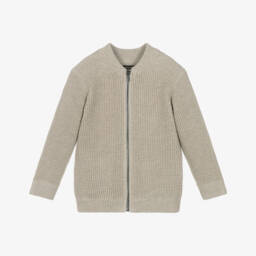 Navy blue zip-up top for boys by Mayoral, with the look and feel of a chunky knit jumper. Cosy and warm, it has a soft fleecy lining and ribbed trims. Ideal for layering in the cooler months, it fastens with an exposed zip on the front.