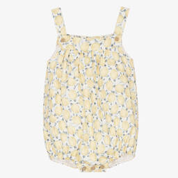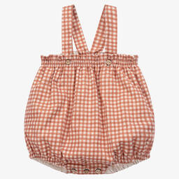 This boys green check cotton shortie by Mebi is made from beautifully lightweight textured cotton. Perfect for warmer days, it features short sleeves, gently elasticated cuffs, and mother of pearl button fastenings on the front and between the legs. Mebi is known for its smaller fit, so consider sizing up to allow room to grow. Limited quantities available, last chance to buy.