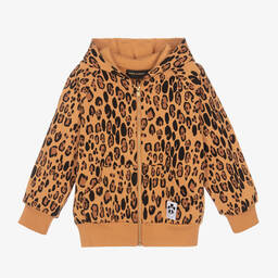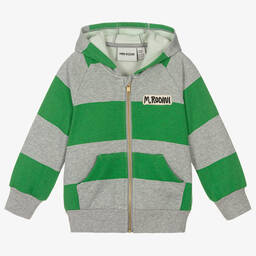 Boys and girls pale yellow hooded zip-up top by Mini Rodini, made in mid-weight organic cotton jersey. In the brand's typical style, it features a quirky print on the front depicting the green Loch Ness monster. There are comfortable ribbed trims and useful front pockets, ideal for little hands.