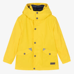 Exclusive to Childrensalon, a navy blue raincoat for boys and girls by Mitty James. Ideal for outside adventures, it has a soft, waterproof coating and useful, reflective detailing on the pockets and around the back for safety. Warm and cosy, it has a hood, stand-up collar and a striped, navy blue fleece lining. The cuffs have ribbed inserts for extra cosiness, and the front zip fastening has a branded popper-fastening flap over to keep the weather out and the warmth in. There is a rubberised grey logo badge on one pocket.