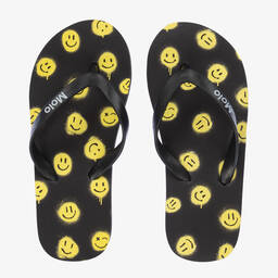 Cool navy blue flip flops for boys, by Molo. Made in flexible rubber, the base is printed with a quirky yellow and grey tie-dye print. Great for the beach or the pool, they have navy blue logo straps for comfortable wear and non-slip ridged soles.