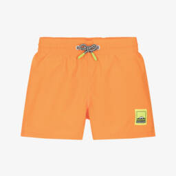 Dark beige swim shorts with UPF50 protection for boys by Molo showcase a blend of practicality and style. Crafted from lightweight, recycled nylon, these shorts feature a soft mesh lining and an elasticated drawstring waist for a comfortable fit. Neon green branding adds a playful touch, making them perfect for sunny days by the pool. Limited quantities available, making it a last chance to buy this summer essential.