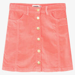 The girls pink organic cotton horse skirt by Molo features a delightful horse design printed on the hem, making it a charming addition to any wardrobe. Crafted from soft organic cotton poplin, it ensures comfort and style. The elasticated pink and glittery gold striped waistband adds a touch of sparkle. Perfect for spring and summer, this above-the-knee skirt is a last chance to buy item with limited quantities available.