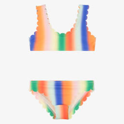 Beige scallop trim bikini crafted by Molo offers UPF50+ protection and is designed for girls. This stylish swimwear piece features a silky and stretchy fabric made from recycled polyester and elastane, providing both comfort and a chic look. The elegant scalloped edging adds a touch of sophistication, perfect for making a splash at the pool or beach. Limited quantities available, so secure this must-have bikini today.