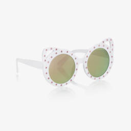 Fun glasses for girls by Molo, with clear pink frames that are patterned with colourful happy dots. The brown gradient lenses have UVA and UVB protection in the level 2 category, offering good protection against sunglare, and they come with a useful branded cleaning cloth.