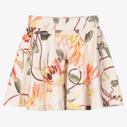 Dusky pink for girls by Molo, made in soft and mid-weight organic cotton jersey. With an elasticated waist and an 'A' line shape, it has a lovely colourful butterfly print around the hem.