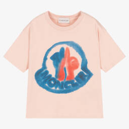 A cotton jersey T-shirt for teen boys from luxury label Moncler Enfant, in light blue. The neckline and cuffs are striped in blue, white and red, signature colours of the brand for that unmistakable designer look. The iconic felt logo badge is stitched on the chest for an extra branded detail.