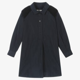 Grey marl hooded dress for little girls by luxury brand Moncler Enfant, with a stylish dropped waist. Made in soft sweatshirt jersey, this easy-to-wear piece has the brand's cursive logo printed on the chest in shimmery silver, and the iconic felt logo badge on one sleeve for instant brand recognition. It has logo embossed popper fastenings on the front for easy dressing.