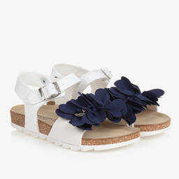 A pretty navy blue faux leather and velvet bracelet by Italian designer, Monnalisa. It has a double band with faux flowers and faux pearls on the top band and large faux pearls, with a soft tassle on the lower band. It has a gold clasp and a sweet gold heart logo charm too.