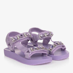 Girls pink glitter sandals by luxury Italian brand, Monnalisa. The white footstrap is decorated with a velour teddy bear motif and flower appliqué. They have an adjustable ankle strap with buckle fastening and the leather footbed is moulded for optimum foot support, with a mid-sole made from faux cork. The non-slip sole is made of rubber for a sure grip.