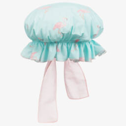 Monnalisa Chic girls straw sun hat. This elegant clouch style hat is made from straw and trimmed in navy blue grosgrain fabric around the base and brim with a raw edging and a cream and navy blue ribbon stitched on the side. An elegant yet practical summer hat equally perfect for everyday and special occasions. Age/ Designer Size: