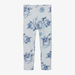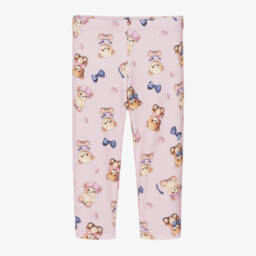 Pretty white leggings for little girls by Italian brand Monnalisa, with a feminine pattern of pink roses, logos and beige polka dots. Full length, they are made in comfortable jersey with a gently elasticated waist for a comfortable fit.