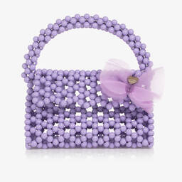 Girls bright yellow beaded handbag by Monnalisa. This fun accessory by the luxury Italian brand has a firm structure and a chunky handle, with a flap to close over the top that is decorated with a tulle floral appliqué.