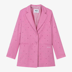 The girls rhinestone black blazer by MSGM sparkles with elegance, featuring colourful rhinestones on the front and sleeves. Made from a soft viscose-blend twill, it offers comfort with its pink satin lining and fabric-covered button fastenings. Suitable for special occasions or elevating everyday outfits, this blazer includes practical front pockets with a subtle designer logo. Limited quantities available, ensuring a unique addition to any wardrobe.