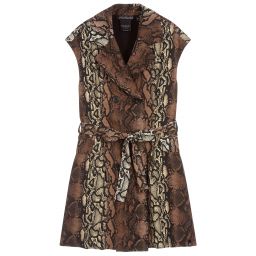 A pretty blue and white floral dress for teen girls by NIK&NIK, made in silky, recycled polyester crêpe. It has elasticated shirring on the front and back bodice and puffed sleeves. There are soft gathers on the waist, a ruffled hem and little frills over the shoulders. It has a single button fastening on the back and a full lining.