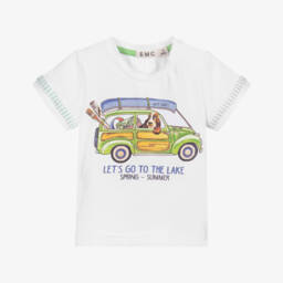 Boys white logo T-shirt by Off-White is crafted from soft cotton jersey. Featuring the distinctive Off Stamp logo in pink on the front and the iconic oversized arrows logo on the back, this piece stands out. Ideal for casual wear, it offers comfort and style. Limited quantities available, don't miss your last chance to buy.