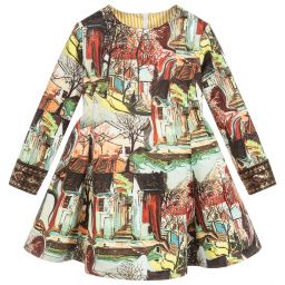 Girls lightweight blue ribbed cotton shirt dress by Pan Con Chocolate, with a colourful flower print throughout. It comes with a detachable belt, and has a white cotton lining. There is a button fastening on the front and two breast pockets.