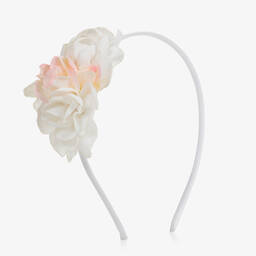 Pretty pink hairband for girls from Patachou, with fabric 3D flowers on one side for a feminine finish. The band is flexible and covered with satin for a comfortable fit.