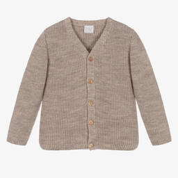 Ivory knitted cardigan for baby boys and girls, by Paz Rodriguez. Crafted in beautifully soft Merino wool with a raised dotted effect, it has sweet iridescent buttons fastening the front. The brand's logo charm delicately finishes the style with a branded touch.