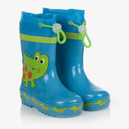 Boys green dragon rain boots by Playshoes. Made from flexible rubber with a playful dragon print, they feature a smooth nylon extension with an adjustable toggle to keep water out. These boots have a soft textile lining and a padded inner sole for comfort. Non-slip rubber soles and reflective patches enhance safety. Limited quantities available, so last chance to buy.