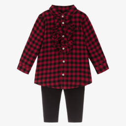 Girls navy bear legging set by Ralph Lauren features a charming navy top with playful bear graphics and an elegant peplum hem. The top is crafted from soft cotton jersey, ensuring comfort and ease of wear, while the ivory leggings, made from a ribbed knit blend of polyester, viscose, and elastane, provide a snug yet flexible fit. Perfect for cool autumn days, this delightful ensemble is a last chance to buy, with limited quantities available.