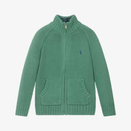 Blue zip-up hoodie for boys by Ralph Lauren, made in mid-weight cotton-blend jersey. For a fun twist on a classic item, the front pouch pocket is contrasting yellow to match the large script logo print across the chest. For an extra designer touch the brand's signature pony logo is embroidered on the front.