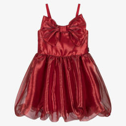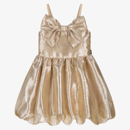 This statement dress for girls by Rock Your Baby, is made in a shimmering gold tulle. Ideal for a special occasion, it has a large bow on the front and a full, gathered skirt with a bubble hem. There is a soft lining and a smocked panel on the back for a great fit.