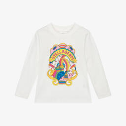 Boys cotton top with a playful horse pocket design by Stella McCartney Kids, crafted from soft organic cotton jersey in a lovely grey shade. This long-sleeved top features a ribbed crew neck for added comfort and highlights the brand's signature whimsical style. Suitable for layering in the cooler months, it's a great choice for casual outings. Limited quantities available, so don't miss the chance to add this charming piece to your boy's wardrobe.