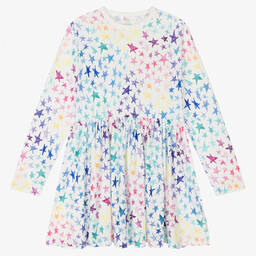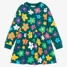 The girls orange cotton crochet dress by Stella McCartney Kids features a charming 70's style with a crochet knit bodice in ivory and yellow, complemented by braided blue shoulder straps for a retro-inspired look. Perfect for warm, sunny days, the dress has a lightweight, gathered orange poplin skirt. Easy to wear by simply pulling on, the dress is a must-have for a stylish summer wardrobe. Limited quantities available, so don't miss out on this unique piece.