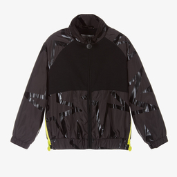 Fun black zip-up hoodie for teen boys and girls by British brand Stella McCartney Kids. Ideal for relaxed wear, especially at Halloween, it has a zipped, ghoulish mask hood with mesh eye inserts to see through and light reflective skeleton prints on the sleeves. Perfect for all-day wear, it is made in comfortable organic cotton jersey with a cosy, fleecy inside. There are zipped front pockets, a useful chin guard and ribbed cuffs with thumbholes for extra warmth.