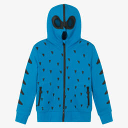 Bright blue zip-up top for teen boys by Stella McCartney Kids, made in super soft polar fleece. Add a pop of colour to any outfit with this top that has an all-over black slogan pattern. It is finished with a silky black chest pocket and subtle logo fastenings.