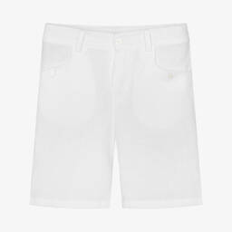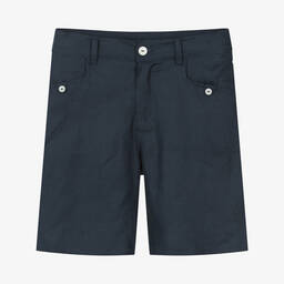 Boys navy linen shorts by Tartine et Chocolat, perfect for warm days. Crafted from lightweight, soft linen, they feature an adjustable waistband for a tailored fit and fasten with a front zip and logo button. Buttoned tabs on the pockets add a stylish touch. Last chance to buy, limited quantities available.