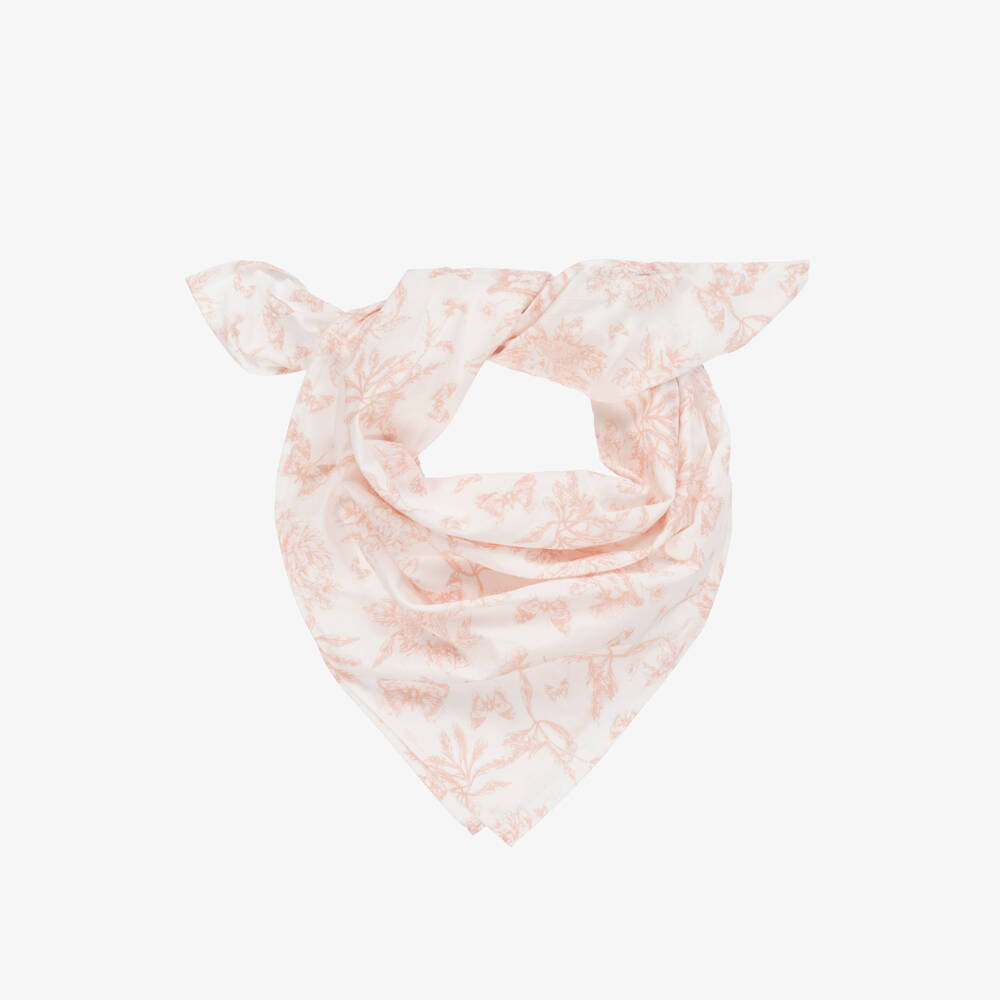 The girls pink patterned cotton scarf by Tartine et Chocolat is a delightful accessory featuring a charming Toile de Jouy design in soft pink. Crafted from lightweight cotton, it offers a lovely style, suitable for adding a touch of elegance to any outfit. Whether draped around the neck or worn over the head, this scarf is a beautiful addition to the autumn and winter wardrobe. Limited quantities available, so do not miss the last chance to buy.