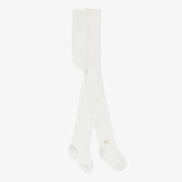 Navy blue tights for girls by Tartine et Chocolat, made in a soft and stretchy cotton blend. Cosy and comfortable, they have an elasticated waistband and are ideal for layering in the cooler months. For a subtle designer touch, the brand's monogram logo is embroidered on one ankle.