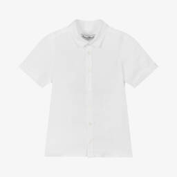 A charming white bow print short sleeve T-shirt for girls by Tartine et Chocolat, featuring delightful flutter sleeves. Crafted from soft jersey, it showcases a playful design of printed and appliqué bows in varying blue shades. Ideal for spring and summer outings, this versatile top complements any casual wardrobe. Designed with comfort in mind, its knitted fabric ensures a snug fit. Limited quantities available, offering a unique addition to any stylish collection.