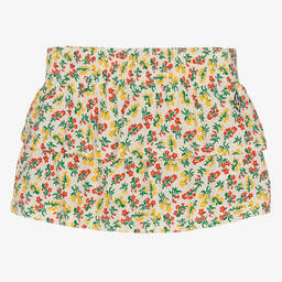 Bright yellow ra-ra skirt for girls by The Animals Observatory, made in soft cotton jersey, with a fun black leopard print pattern. Casual and easy to wear, it has attached shorts and an elasticated waist for a comfortable fit. There is a red embroidered logo on the front.